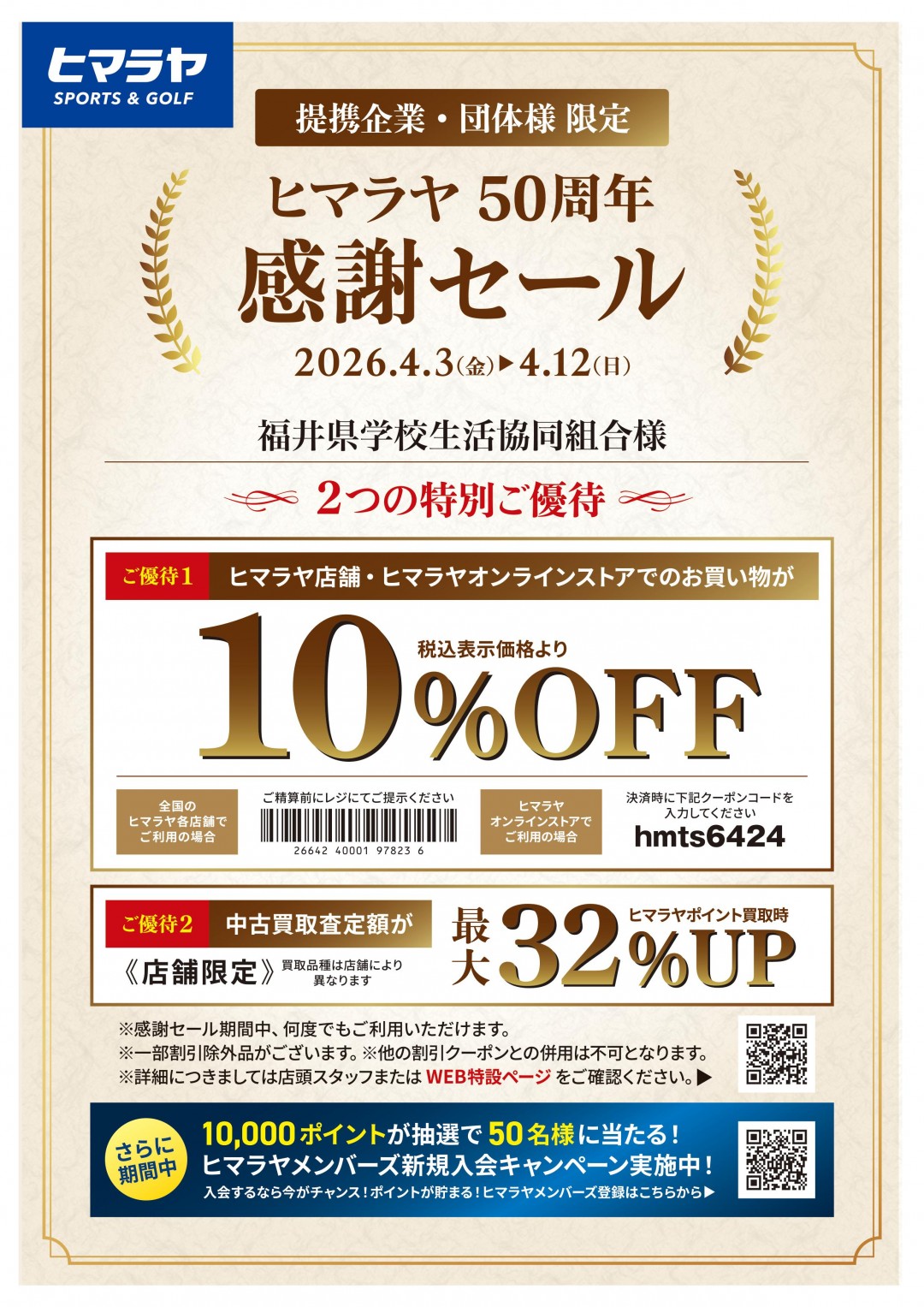 | 営業時間 | ヒマラヤスポーツ&ゴルフ 越前店 10:00~20:00 ヒマラヤゴルフ 福井店 10:00~20:00 |